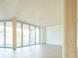 Die TS3-Technologie ermöglicht die Konstruktion von massiven Holzdecken mit Stützenabständen von bis zu acht mal acht Metern. Die TS3-Verbindung mittels Fugenverguss ermöglicht den Bau von unterzugsfreien Skelettbaustrukturen aus Holz mit schlanken, punktgestützten Platten, was bisher nur in Stahlbeton möglich war. Die Bemessung einer TS3-Decke erfolgt ähnlich wie bei einer Stahlbeton-Flachdecke. Die TS3-Verbindung kann als starr angenommen werden, was eine effiziente Modellierung und Berechnung ermöglicht. Dank dieser Technologie können auch unregelmässige Grundrisse problemlos umgesetzt werden, was dem Architekten eine hohe gestalterische Freiheit bietet. Diese bahnbrechende Lösung eröffnet völlig neue Möglichkeiten für den Holzbau und ermöglicht es, komplexe Architekturen umzusetzen, die bisher nur mit Stahlbeton realisierbar waren.