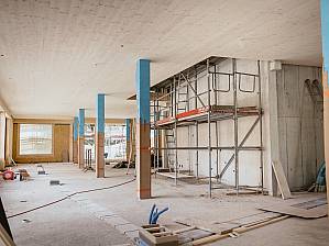 hilft bei der Aussteifung. Im Innenbereich kann komplett auf tragende Wände