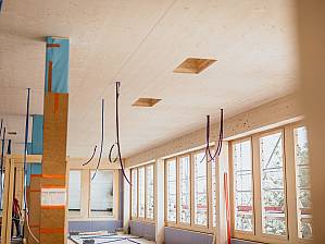 verzichtet werden. Insgesamt wurden 882m2 Brettsperrholzplatten eingesetzt,