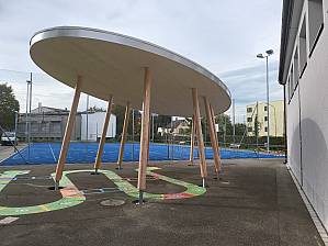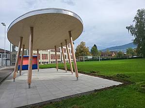 The municipality of Goldach constructed three new playground shelters to enhance the existing school grounds. The goal was to create weather-protected gathering areas for students that support recess activities and outdoor instruction. The structures are clearly organized and designed to be robust and durable. Their open design preserves visual connections, and the shelters blend naturally into the outdoor space. Functionality, safety, and child-friendly use were central to the planning.