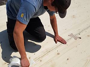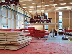 The 140 mm thick CLT panel forms the roof. The panel consisting of two individual parts was cast on site using TS3 technology to form an area of 37.5 m2. Supported the ceiling is supported by 2 columns at a distance of 5 meters.