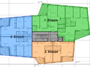Just-in-time requires that the planning is completed in the correct phase and that production can start on time and with sufficient lead time. Safe, precise, low-noise and traffic-friendly construction in the shortest possible time, so that tenants can move back in quickly. This shortens the construction time by a total of 11 months.