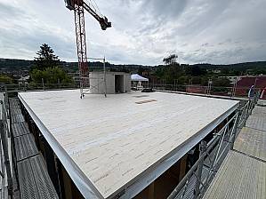 The initial preparatory work for the new residential and commercial building at Bergstrasse 137 began in August 2024. The TS3 technology will create an open three-storey building with a skeleton structure, with the new municipal and school library on the ground floor and basement, practice space for primary medical care on the first floor and four rental flats on the first floor.