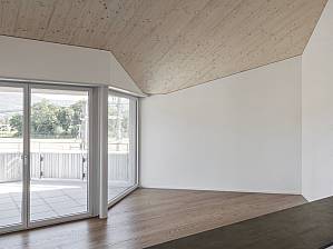 Les plafonds en bois lamellé-collé sont assemblés à l’aide de joints TS3 pour former de grandes surfaces continues. Ils reposent à la fois sur des piliers en béton armé très fins et sur les murs extérieurs porteurs. Grâce à ce mode de construction, 190 m² de surface de plancher TS3 ont pu être réalisés.